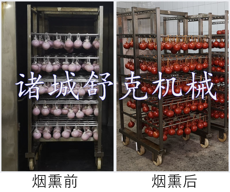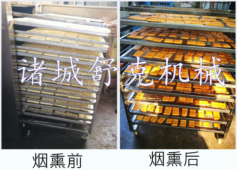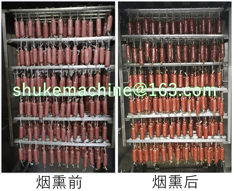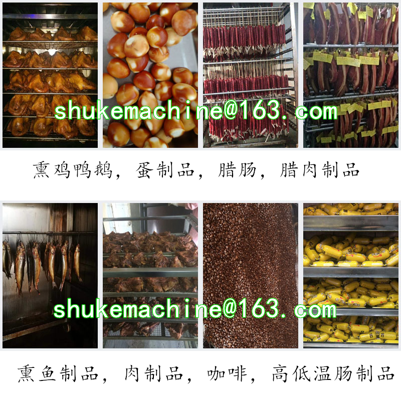 本機用于煙熏肉制品熟食,熏雞,熏鴨、熏鴿、烤腸,烤雞,熏魚,烤鴨,煙熏豆腐干臘肉以及家禽,水產品等等熏制產品,烘干,上色一次成型.煙熏色澤好,口感更佳.質量保證,技術優(yōu)良,操作方便.經過煙熏后食品的顏色好看,還有一種煙熏后的香味,讓人感覺香而不膩,也能達到環(huán)保效果,徹底代替了傳統(tǒng)的煙熏爐方法,節(jié)省了工人的勞動了,提高工作效率,更增強了食品的口感及彈性。主循環(huán)風扇送風均勻,使爐體內溫度均勻,采用設定參數(shù)方式,通用性廣,自動運行中的參數(shù)可修正。